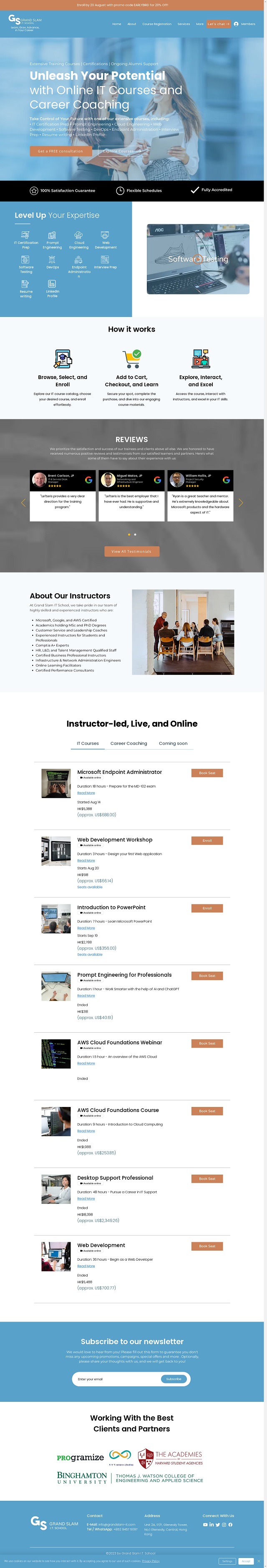 Grand Slam I.T. School offers a wide range of online IT courses and career coaching services. Our mission is to empower individuals to advance in their careers through flexible, professionally-led courses. We specialize in IT Certification Prep, Cloud Engineering, Web Development, Interview Prep, Resume and LinkedIn profile optimization, and more. Our courses are designed to equip students with the skills they need to excel in the ever-evolving tech industry.